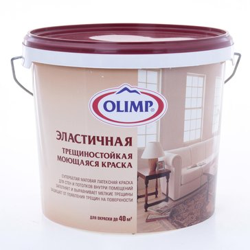 Эластичная супербелая матовая моющаяся краска для штукатуренных зашпаклеванных поверхностей внутри сухих/влажных помещений,заполняет и выравнивает мелкие неровности и трещины, расход 5-8м2/л
