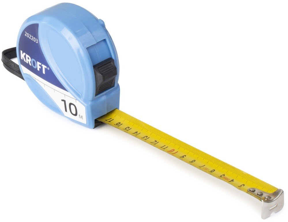 Рулетка оснащена фиксатором, который позволяет удерживать измерительное полотно, обеспечивая контроль процесса измерения и удобства работы. Фиксация ленты происходит механическим путем – с помощью зажима. Обрезиненный корпус удобно лежит в руке и не натирает ладонь. Для удобства хранения и транспортировки инструмент оснащен специальным ремешком для ношения на руке и поясным креплением. Белая лента рулетки и яркая заметная разметка значительно облегчают использование в слабоосвещенных помещениях.