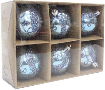 - Набор шаров с узором 6см 6шт голубой KING-1918