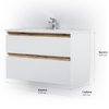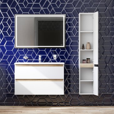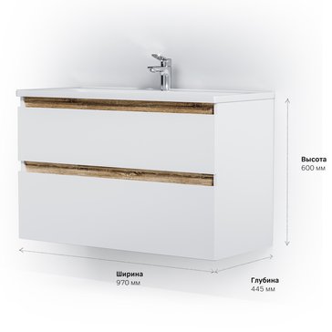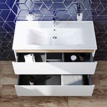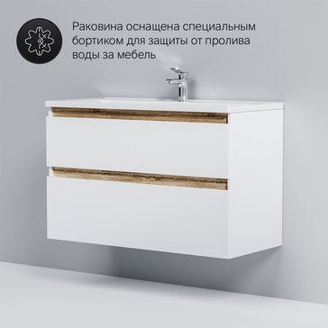 Впервые на рынке – дизайнерская коллекция сантехники которую может позволит себе каждый. Самое эстетичное сочетание цветов и фактур от дизайн-бюро Danelon Meroni (Великобритания & Италия): белые глянцевые фасады дополнены отделкой под светлое дерево. Функциональный органайзер в первом ящике позволит хранить необходимые косметические средства под рукой и в полном порядке. Внутреннее покрытие каждого ящика выполнено в современном цвете Anthracite и имеет противоскользящее покрытие. Встроенная керамическая раковина белоснежного цвета оснащена специальным бортиком для защиты от пролива воды за мебель.