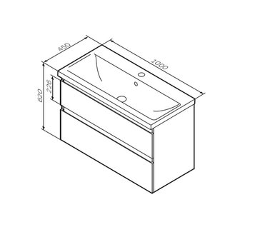 База под раковину, подвесная, 100 см, 2 ящика, белый глянец