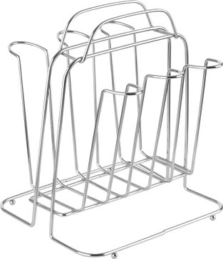 Подставка позволяет разместить до 6 чашек или стаканов Благодаря наличию ручки удобно переносить и ставить на стол вместе с чашками Размер: 18,5х15,6х18,5 см Материал: хромированный металл