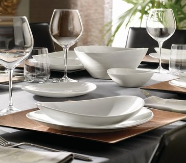 Коллекция Prometeo уникальна. Она характеризуется извилистыми линиями и сложной текстурой материала. Сделанные из закаленного опалового стекла, продукты в коллекции характеризуются текстурой, которая создает ощущение художественной аутентичности. Подходит для использования в микроволновой печи.