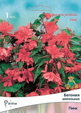 Пинк - высота растения 20-30 см, цвет розовый. Бегония ампельная - кустовидное клубневое растение с длинными тонкими быстропоникающими побегами. Листья косо ланцетные, по краю зубчатые, голые или сильноопушенные. Цветки крупные, махровые, по 2 в пазушных соцветиях, различной окраски от белых и желтых до шарлаховых и темно-красных. Цветет обильно и продолжительно.