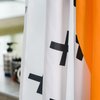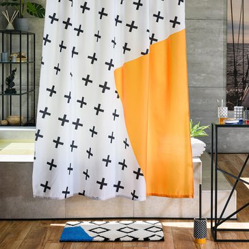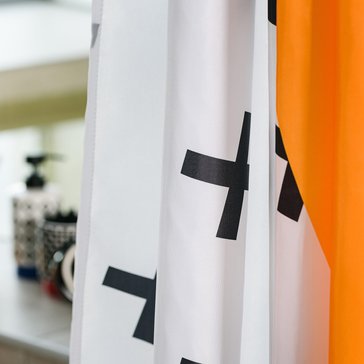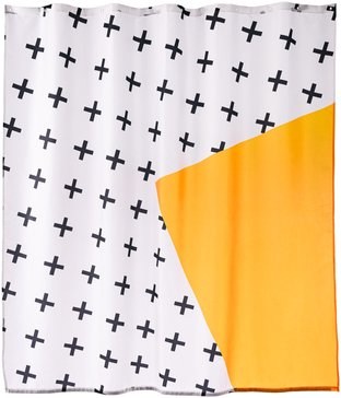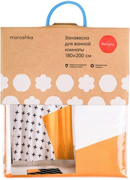 Занавеска для ванной комнаты из полиэстера. Имеет размер 180х200мм. Плотный износостойкий материал прост в уходе и надежно защищает от нежелательных брызг и лишней влаги за счёт специальной пропитки. Рисунок, выполненный в авангардном стиле, прекрасно сочетается со всеми элементами коллекции Memphis: стаканами для зубных щёток, подставками, дозаторами и другими.