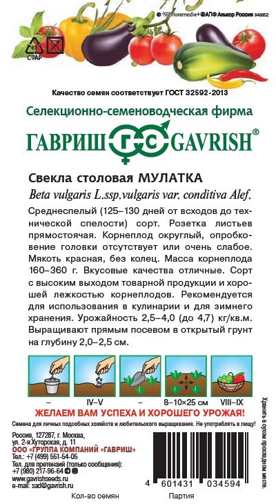 - Семена Свекла Мулатка 2г Гавриш
