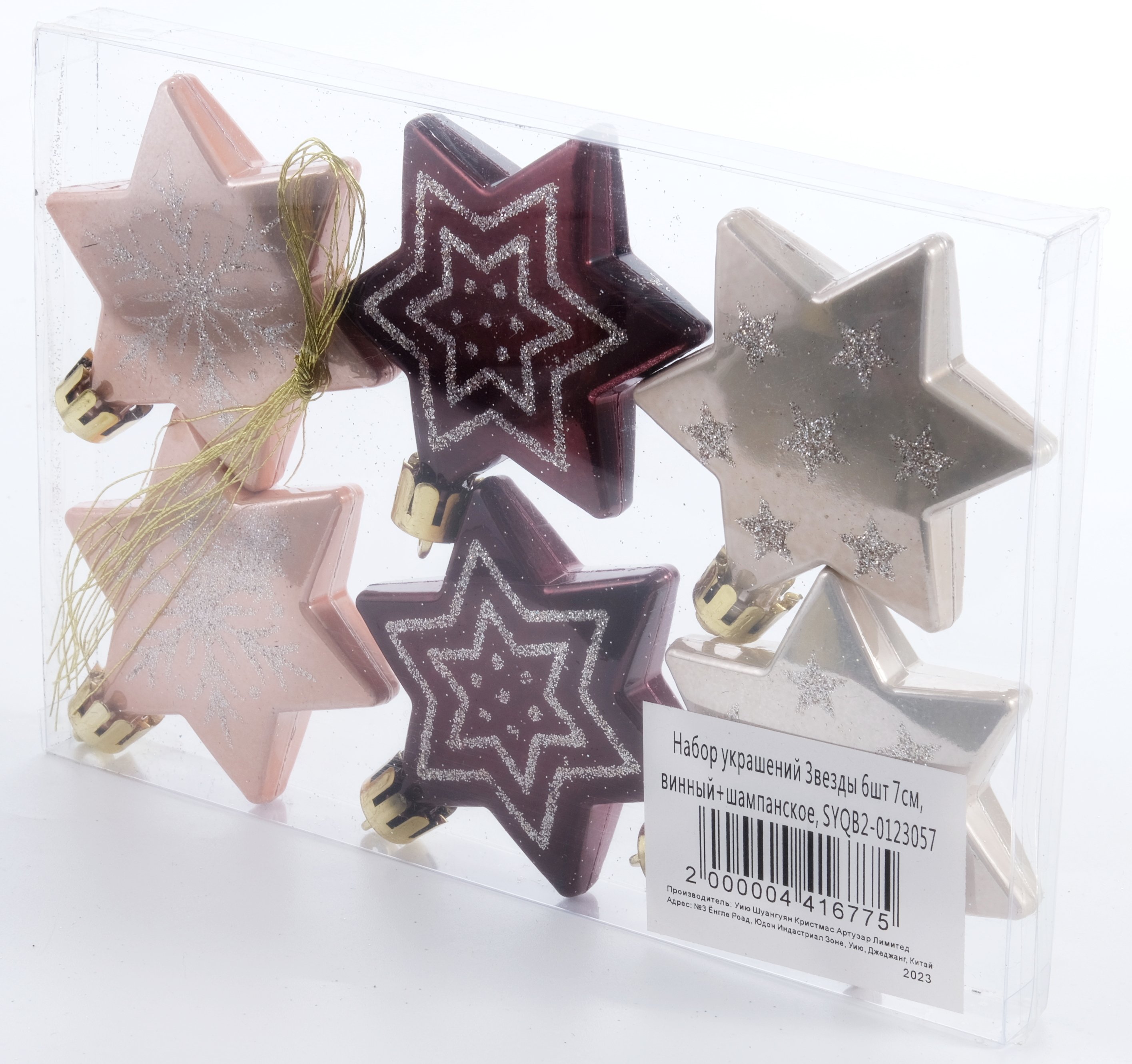 - Набор украшений Звезды 6шт 7см, винный+шампанское, SYQB2-0123057
