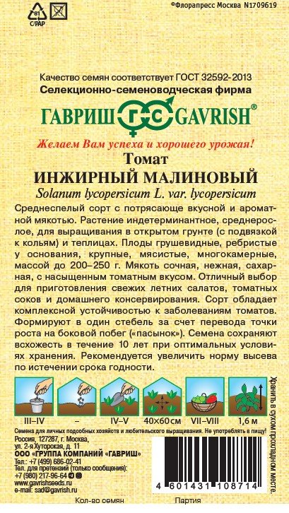Среднеспелый сорт с потрясающе вкусной и ароматной мякотью. Растение индетерминантное, среднерослое, для выращивания в открытом грунте (с подвязкой к кольям) и теплицах. Плоды грушевидные, ребристые у основания, крупные, мясистые, многокамерные, массой до 200–250 г. Мякоть сочная, нежная, сахарная, с насыщенным томатным вкусом. Отличный выбор для приготовления свежих летних салатов, томатных соков и домашнего консервирования. Сорт обладает комплексной устойчивостью к заболеваниям томатов. Посев на рассаду — в конце марта–начале апреля. Пикировка — в фазе первого настоящего листа. Высадка рассады в теплицы — в начале мая (если апрель теплый, то высадка рассады возможна в конце апреля). Формируют в один стебель за счет перевода точки роста на боковой побег («пасынок»). Схема посадки: 40х60 см..