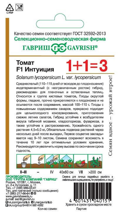 Среднеспелый (110-115 дней от всходов до плодоношения) индетерминантный (с неограниченным ростом) гибрид, рекомендован для пленочных и остекленных теплиц. Относится к группе кистевых томатов. Плоды округлой формы, гладкие, прочно прикрепляются к плодоножке и не осыпаются после созревания, массой 100-110 г. Плоды с повышенным содержанием сахаров, прекрасно подходят для цельноплодного консервирования, приготовления свежих летних салатов. Гибрид устойчив к возбудителям вируса табачной мозаики, кладоспориоза, фузариоза, а также устойчив к растрескиванию. Урожайность одного растения 4,5-5,0 кг.