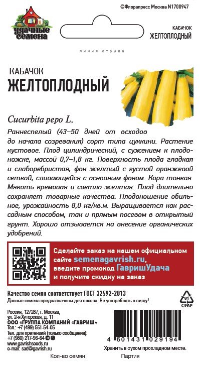 Раннеспелый (43-50 дня от всходов до начала созревания) сорт. Выращивается как рассадным способом, так и прямым посевом в грунт. Посев на рассаду - в апреле, высадка рассады в грунт - в мае – июне. Посев непосредственно в грунт в конце мая – июне. Хорошо отзывается на внесение органических удобрений. Растение кустовое. Плод цилиндрический, с сужением к плодоножке, массой 0,7-1,8 кг. Поверхность плода гладкая и слаборебристая, фон желтый, с густой оранжевой сеткой, сливающейся с основным фоном. Кора тонкая. Мякоть кремовая и светло-желтая. Плод длительно сохраняет товарные качества. Схема посадки 60x60 см. Плодоношение обильное урожайность до 8,0 кг/м2.