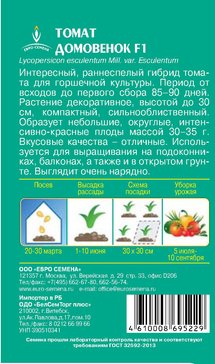 - Семена Томат Домовёнок F1 цв/п 10шт