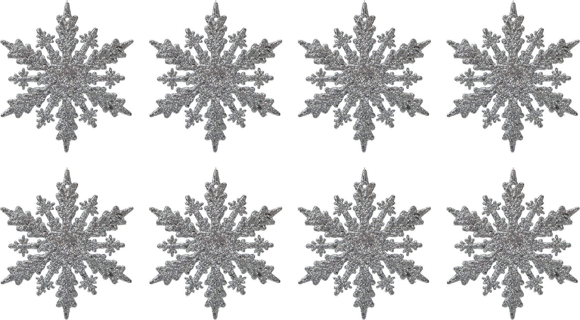 Почему наш набор станет украшением вашей ёлки Грандиозный размер — 10,5 см, идеально заметны на любом дереве Роскошное серебро — благородный цвет создаёт эффект инея Комплект из 8 штук — целая стая снежинок для великолепного декора Изысканный дизайн — каждая снежинка уникальна и неповторима