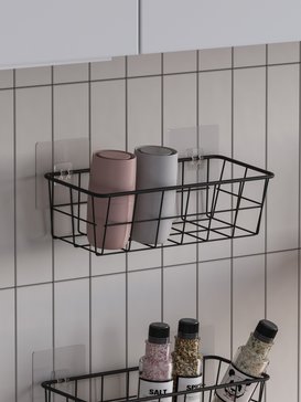 Многофункциональная металлическая корзина для хранения мелочей поможет создать в вашем доме или квартире порядок и уют. Корзины можно использовать в разных зонах вашей квартиры. Так же корзину можно использовать на кухне и в шкафах в виде лотков. Подвесная корзина выполнена из стальной проволоки и покрыта специальной порошковой краской, которая защищает от влаги и ржавчины. Изделие возможно прикрепить на стену без сверления. Выдержит нагрузку до 5 кг. Обратите внимание: Самоклеящиеся крючки входят в комплект
