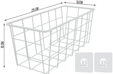 Многофункциональная металлическая корзина для хранения мелочей поможет создать в вашем доме или квартире порядок и уют. Корзины можно использовать в разных зонах вашей квартиры. Так же корзину можно использовать на кухне и в шкафах в виде лотков. Подвесная корзина выполнена из стальной проволоки и покрыта специальной порошковой краской, которая защищает от влаги и ржавчины. Изделие возможно прикрепить на стену без сверления. Выдержит нагрузку до 5 кг. Обратите внимание: Самоклеящиеся крючки входят в комплект