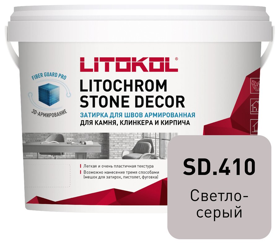Затирка армированная для камня клинкера и кирпича для швов 3-55 мм LITOCHROM STONE DECOR SD.410 Светло-серый (