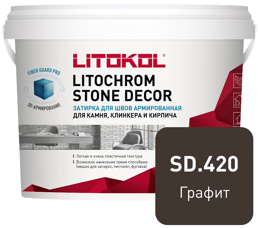 - Затирка армированная для камня клинкера и кирпича для швов 3-55 мм LITOCHROM STONE DECOR SD.420 Графит (4кг)