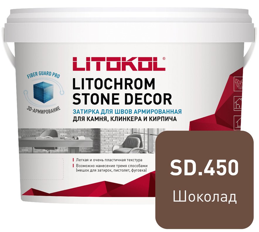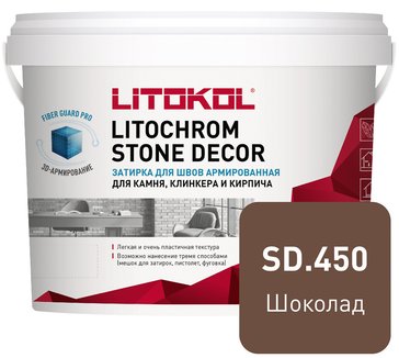 - Затирка армированная для камня клинкера и кирпича для швов 3-55 мм LITOCHROM STONE DECOR SD.450 Шоколад (4кг)