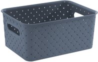 Корзинка из пищевого пластика для хранения и переноски мелких аксессуаров и продуктов питания. В объеме 14л корзинки оптимальны для хранения одежды и обуви, овощей, книг и игрушек и пр. С врезными ручками обтекаемой формы корзинки удобно перемещать. Бортик по периметру крышек обеспечивает фиксацию при штабелировании корзинок друг на друга. Узор «Береста» по всему корпусу и крышке придает корзинкам натуральный вид и делает их легкими и проветриваемыми.