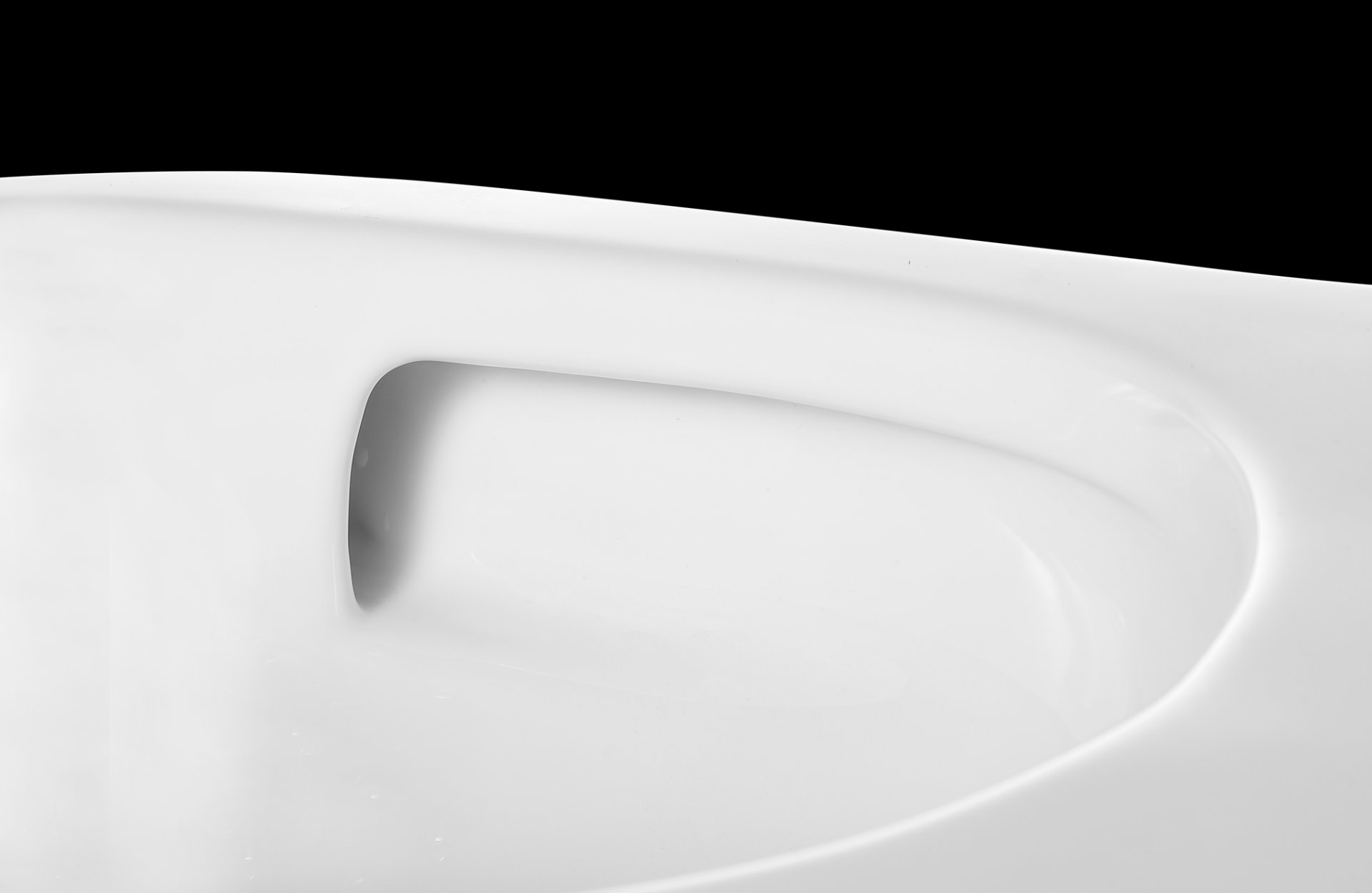 • Безободковая конструкция: Эта особенность обеспечивает идеальное омывание внутренней части чаши, предотвращая появление брызг и накопление загрязнений. Гладкая поверхность делает уход за унитазом простым и быстрым.